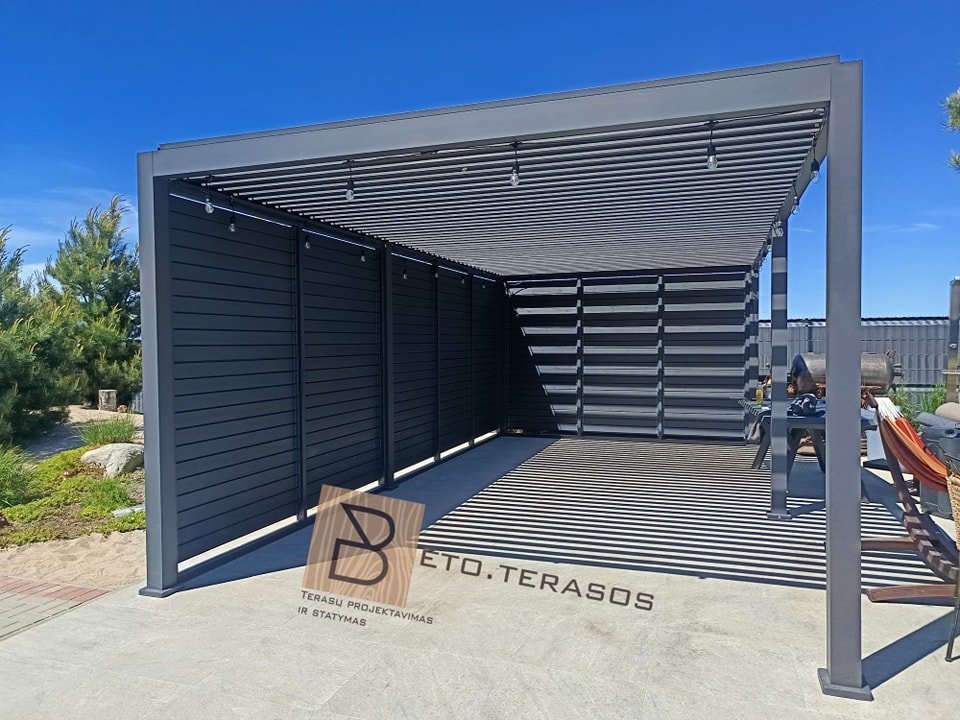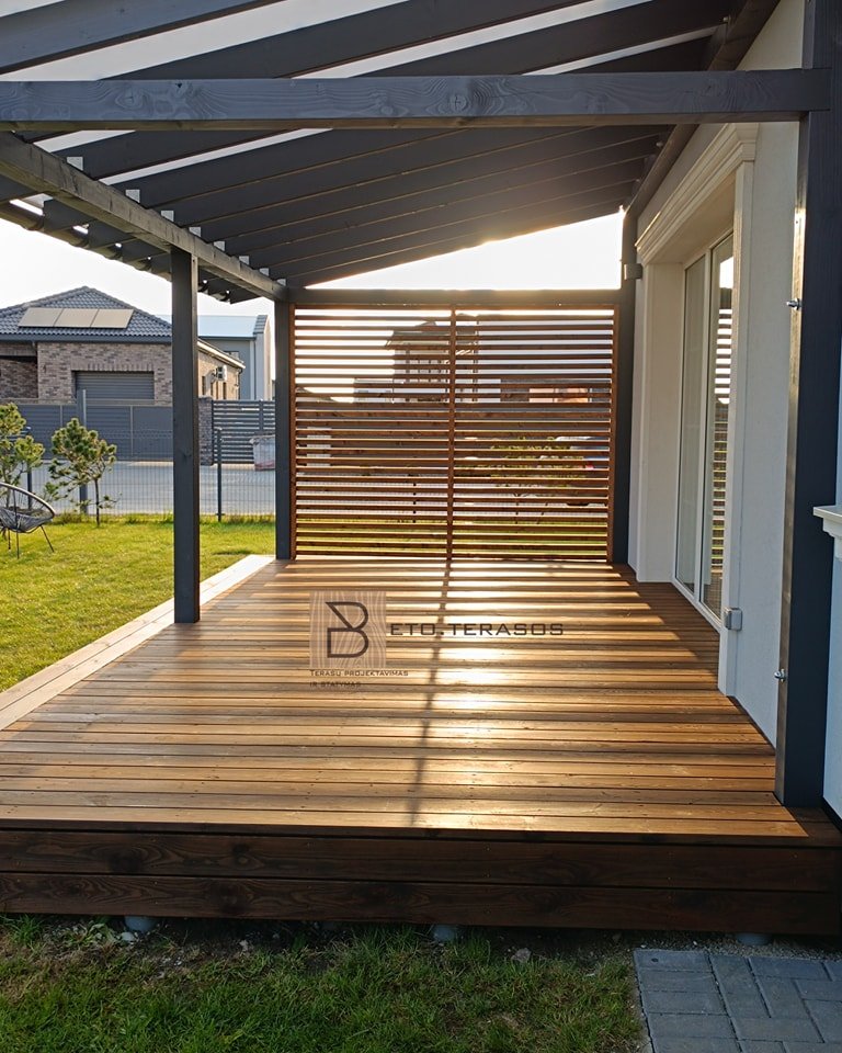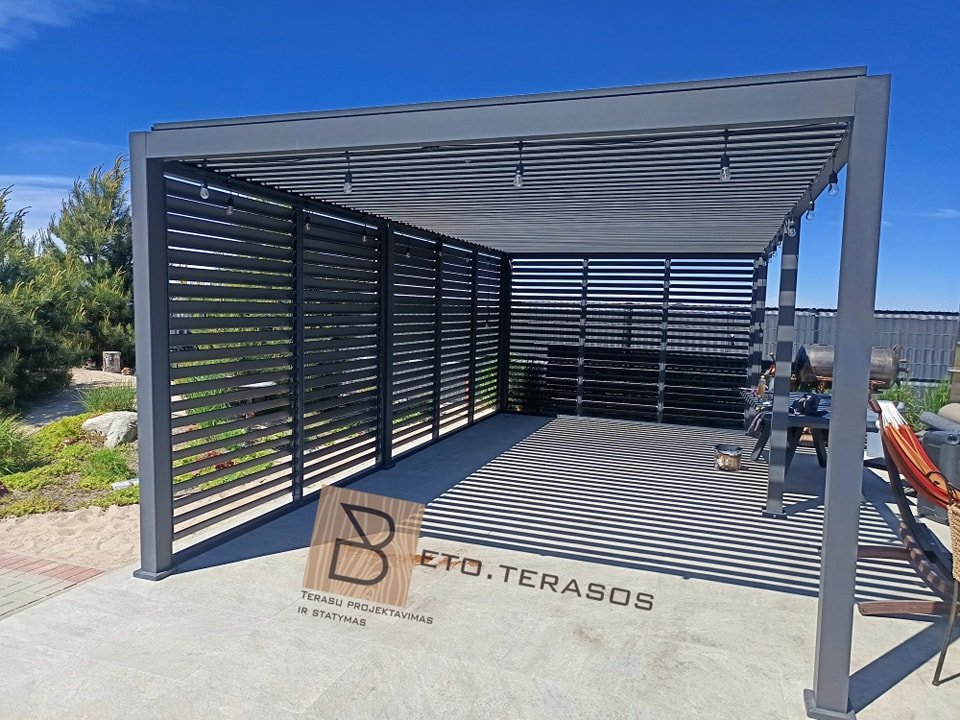 Projektuojant sodą, verta jame suplanuoti erdvę, kuri būtų tinkama apsauga nuo vasaros karščių ar rudens lietaus. Mūsų įmonė tiekia medines reguliuojamas sieneles pavėsinėms, terasoms, balkonų nišoms, garažo nišoms.