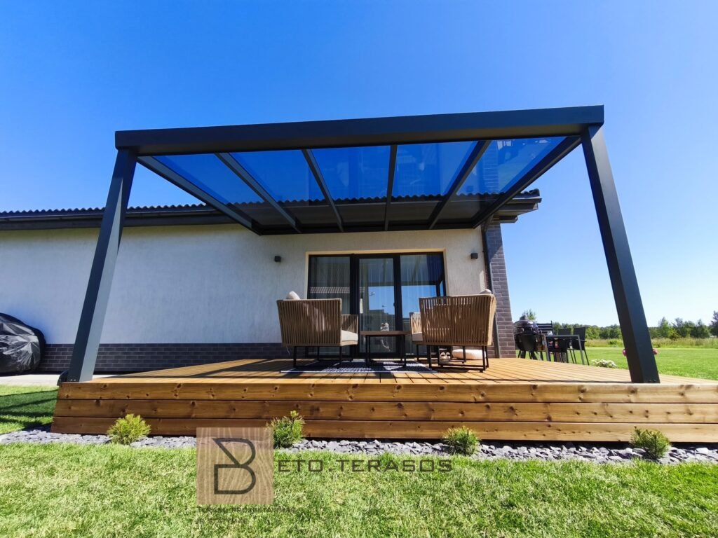 Siūlome stogines terasai ir jų montavimą, kad būtumėte apsaugoti nuo vėjo, saulės ir lietaus ištisus metus. Terasos stogo dangą galime apibūdinti dviem žodžiais: ilgaamžiškumas ir komfortas.